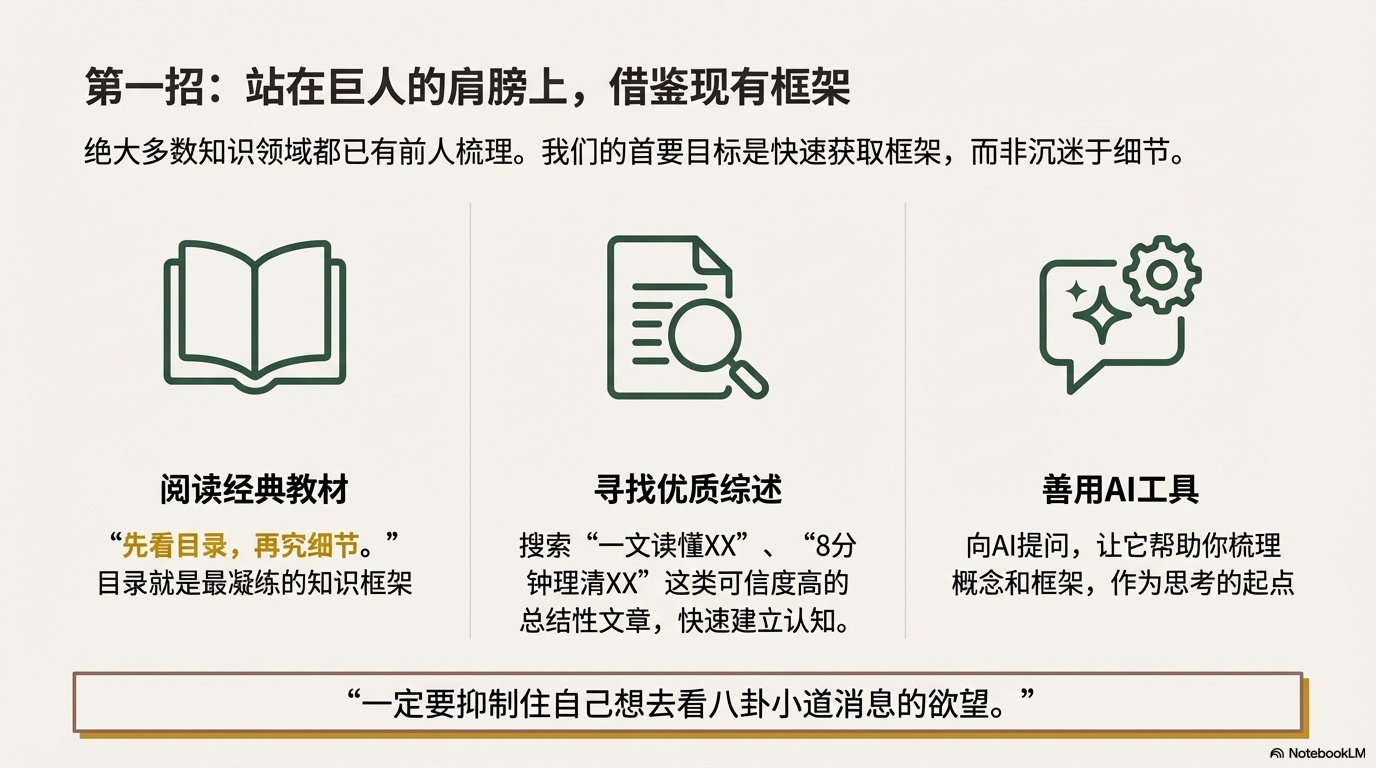 此外,利用现有教材目录或AI工具能快速搭建初步框架,而主动输出则是巩固记忆的关键步骤。